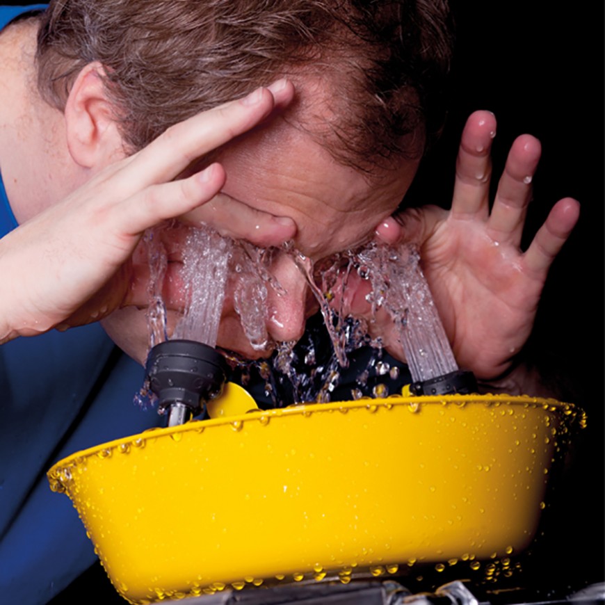 “Las duchas y lavaojos de emergencia pueden reducir considerablemente el daño causado por salpicaduras a los ojos, la cara y el cuerpo de ácidos, bases, compuestos orgánicos y otros productos tóxicos o corrosivos, y también en caso de incendio».
