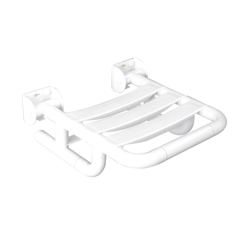 Asiento abatible para ducha de Ø35 mm, con sistema de bloqueo en posición vertical.