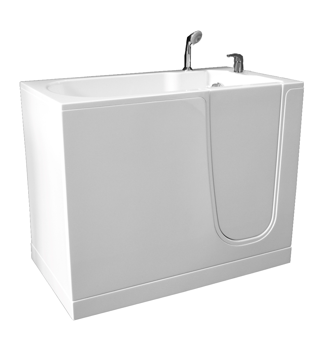 Bañera de 1200 mm con asiento en la izquierda y puerta lateral en la derecha.