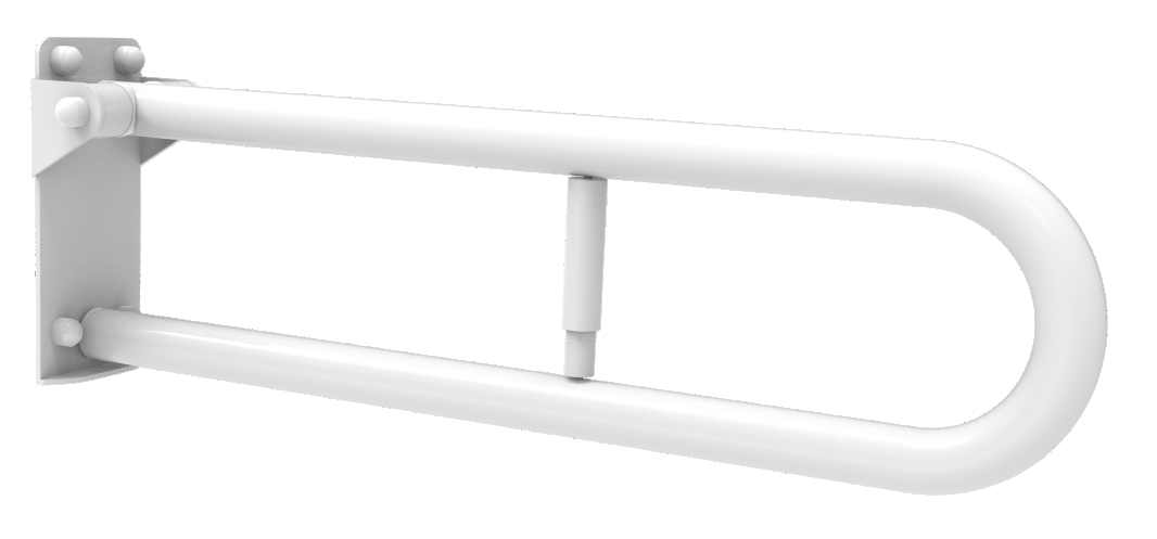 Barra de apoyo abatible de 600 mm con freno para bloqueo vertical, sistema anti-accidentes y portarrollos.