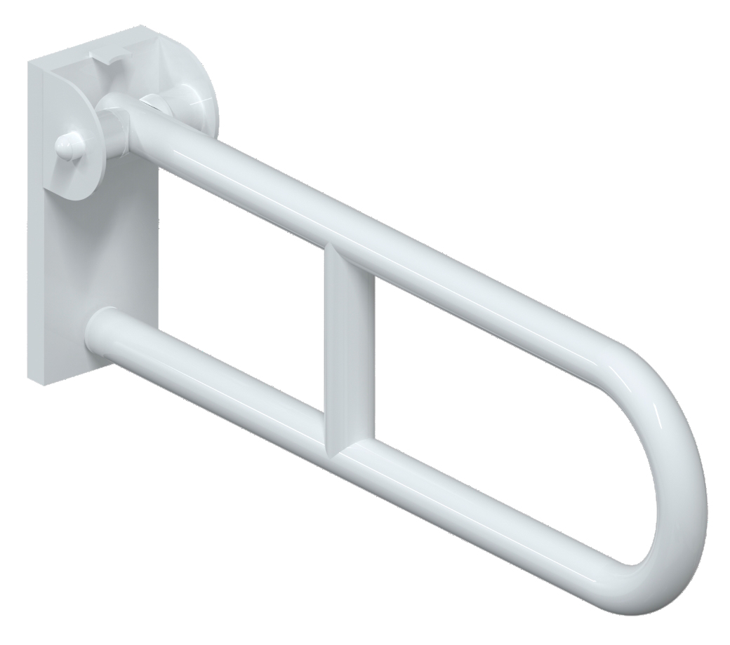 Barra de seguridad desmontable de 620 mm, tipo abatible, con bloqueo embrague de bloqueo vertical y sistema antiaccidentes.