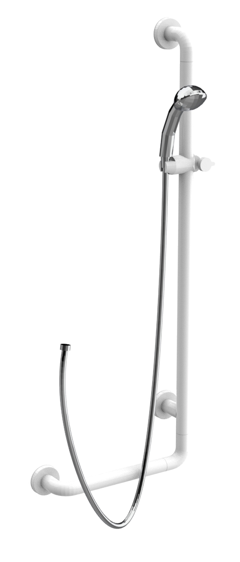 Barra de apoyo angularl Ø35 mm y 400×1100 mm con función de barra corredera, ducha jet en abs cromado, tubo flexible.