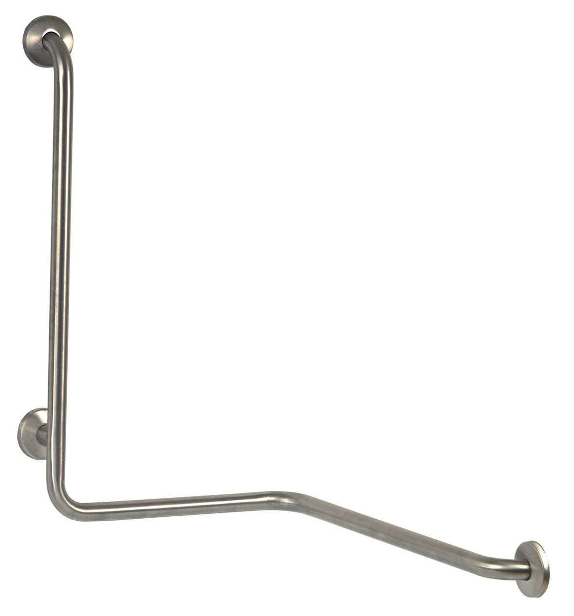 Barra de apoyo de ángulo a dos paredes, de tres brazos con 3 puntos de anclaje a la pared y con florón.