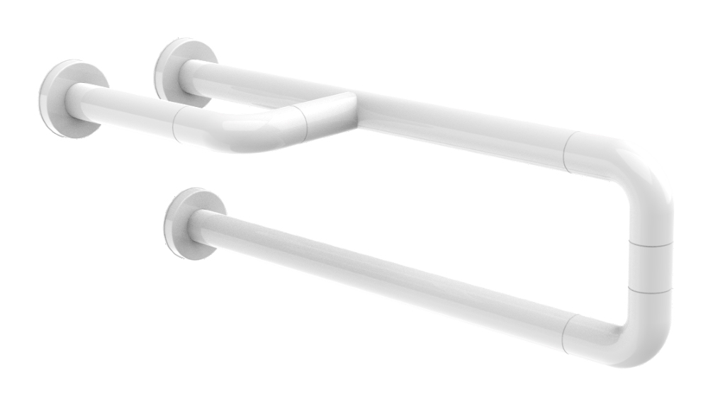 Barra de seguridad fija de pared de 600 mm de profundidad con posibilidad de construcción derecha o izquierda, con refuerzo lateral.