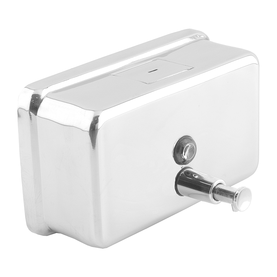 Dispensador de jabón líquido, horizontal, para adosar en pared.