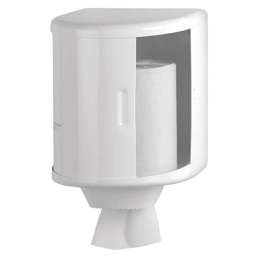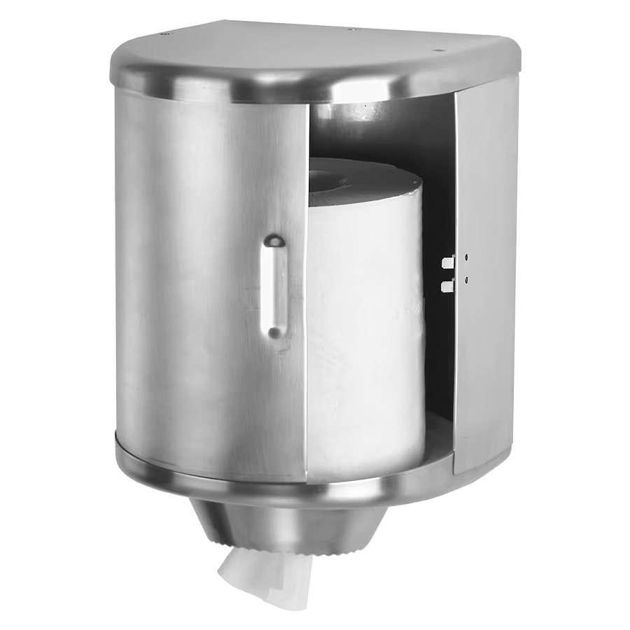 Dispensador de papel bobina manual, para adosar directamente a la pared.