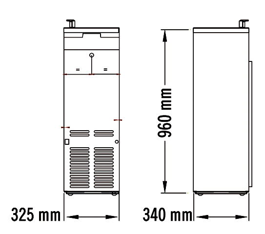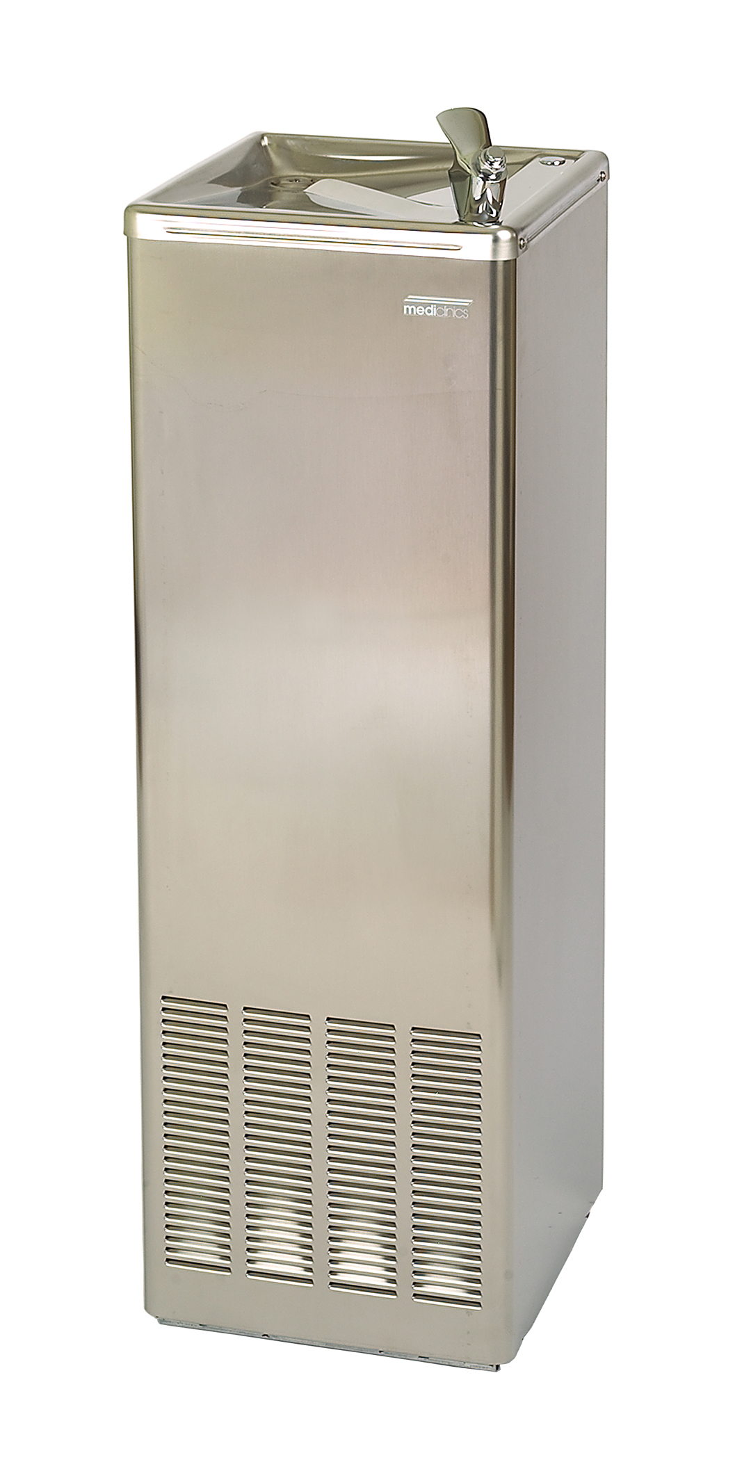 Fuente dispensadora de agua fría con conexión a la red de agua de boca, acabado brillante (FA0015C) o en acero plastificada en gris (FA0015G).