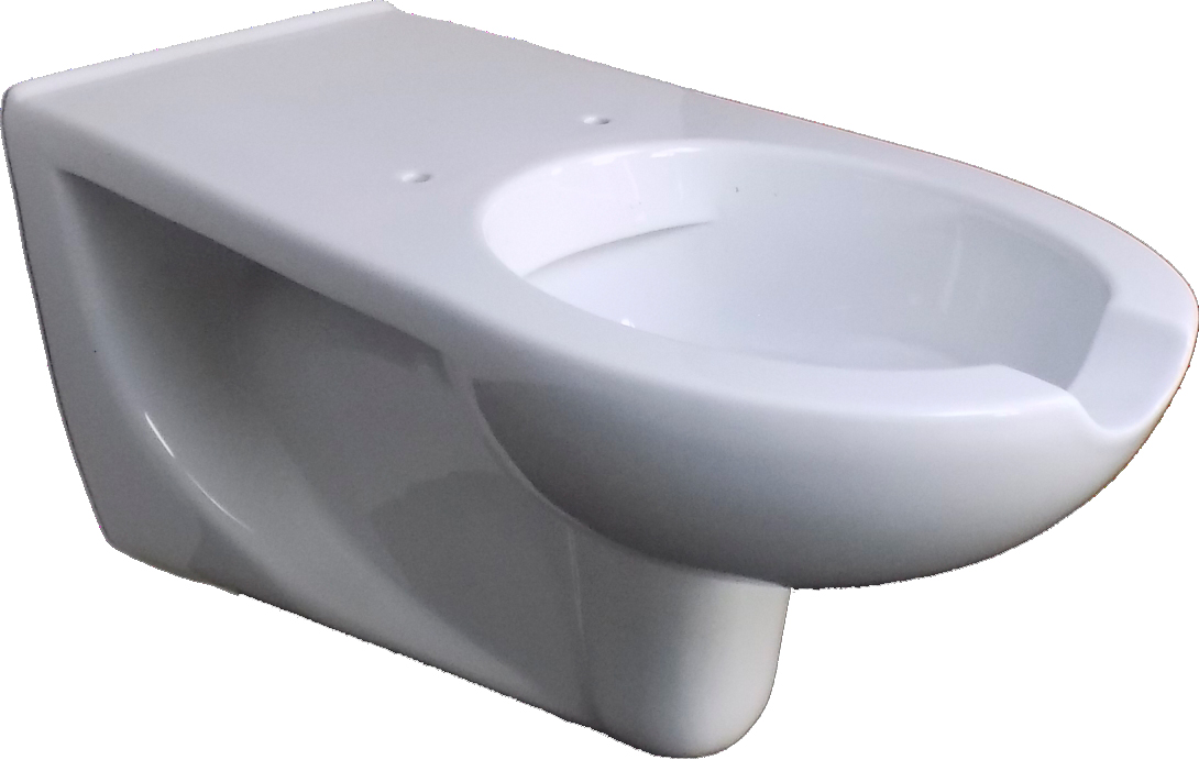 Inodoro suspendido en porcelana, color blanco brillo, con apertura frontal.