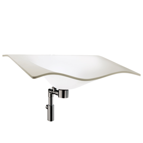 Lavabo ergonómico de uso universal, fabricado en una sola hoja de Corian® blanco opaco o translúcido de 12 mm de grosor.