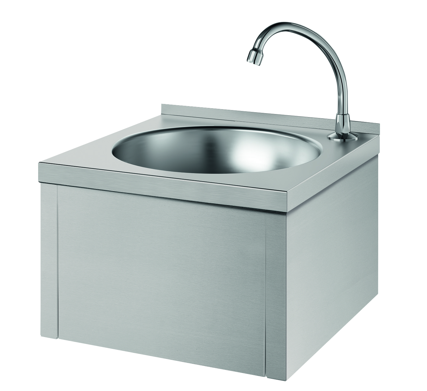 Lavamanos de acero inoxidable AISI 304 bacteriostático mural, acabado satinado.