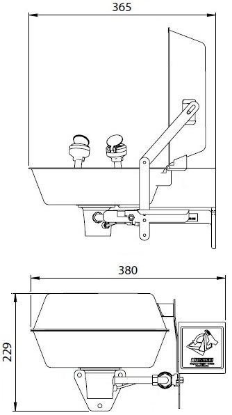 • Entrada de agua 14 L/min a 2,4 bar para lavado ocular seguro. Activación manual con placa ergonómica.
