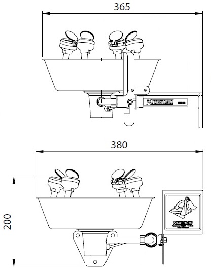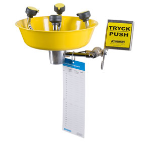 Lavaojos / Lavacara de emergencia para instalar directamente a la pared, fabricado por Krusman.