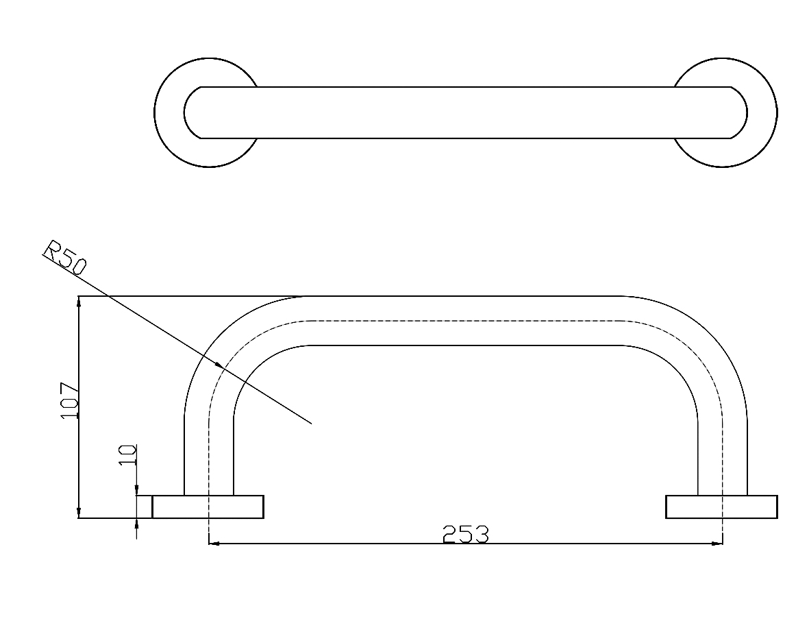 Manillón-toallero recto para adosar a la pared, con dos apoyos y de doble uso: toallero y asidero.
