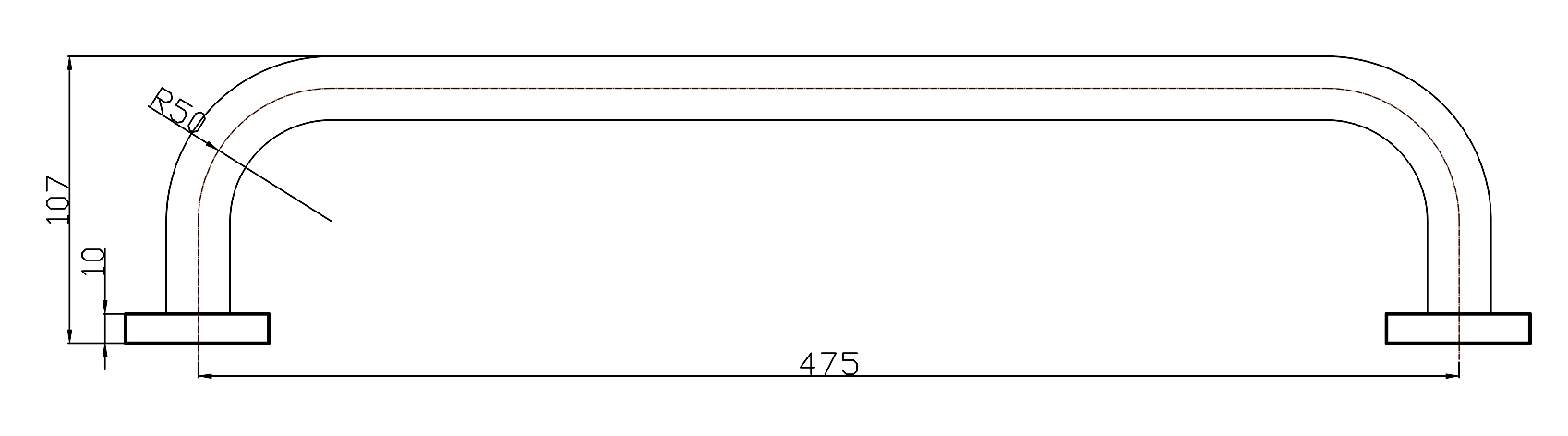 Manillón-toallero recto para adosar a la pared, con dos apoyos y de doble uso: toallero y asidero.