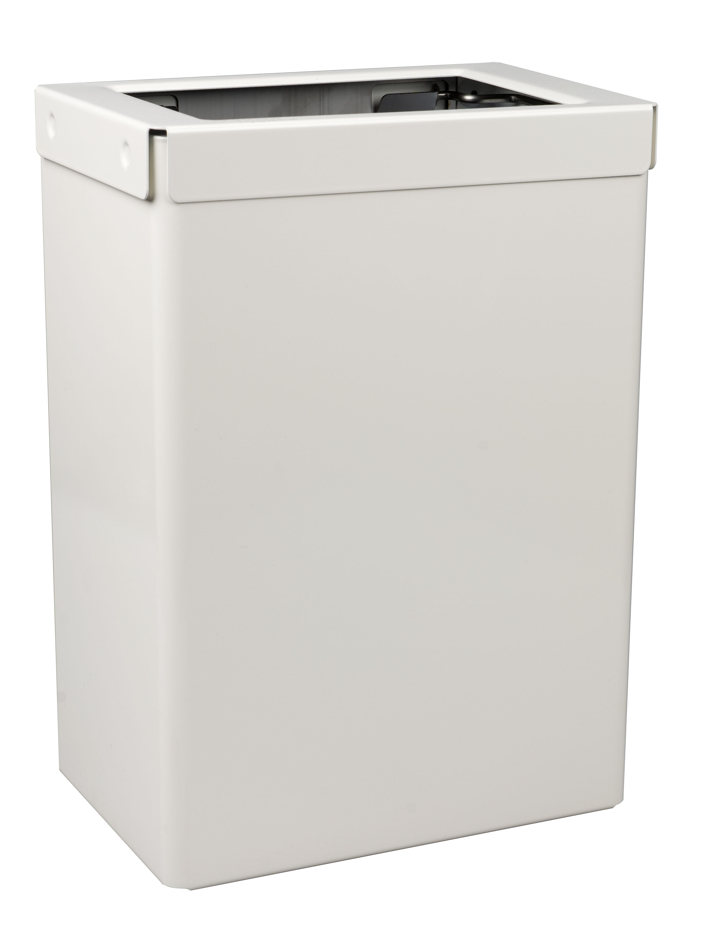 Papelera rectangular con marco superior sin tapa y extraíble de 50 L de capacidad.