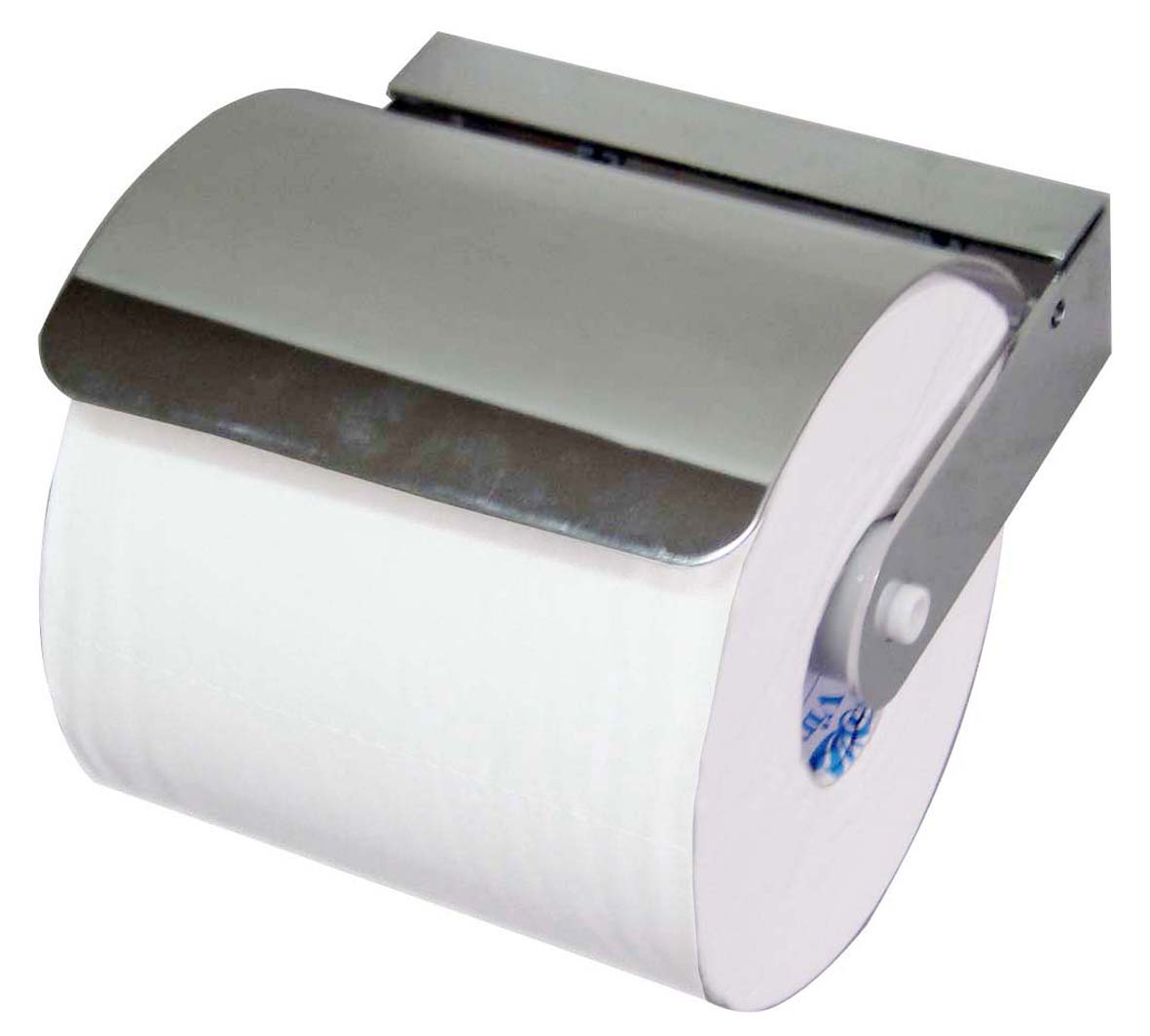 Dispensador de papel higiénico con faldón, para adosar a pared.
