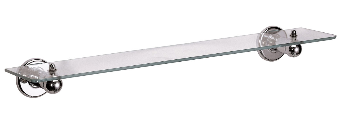 Repisa de baño rectangular de cristal con soportes de latón cromado, para adosar en la pared.