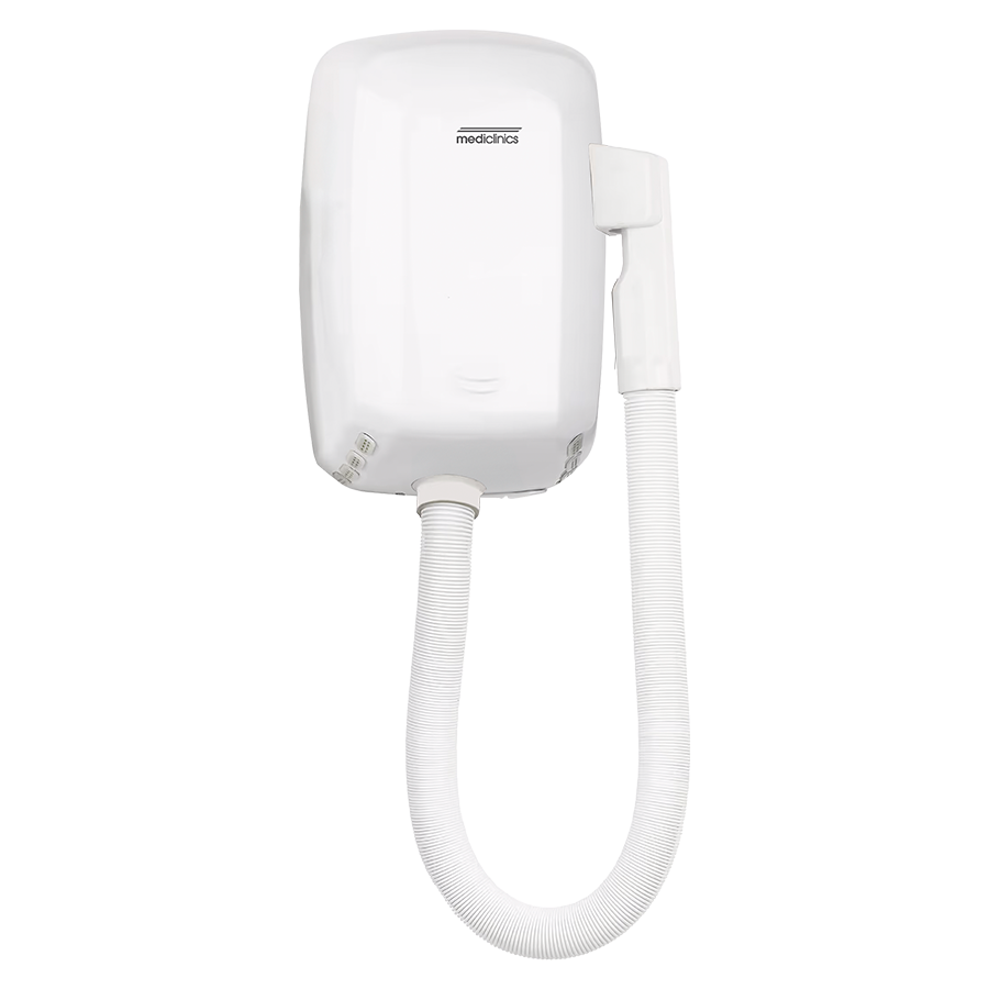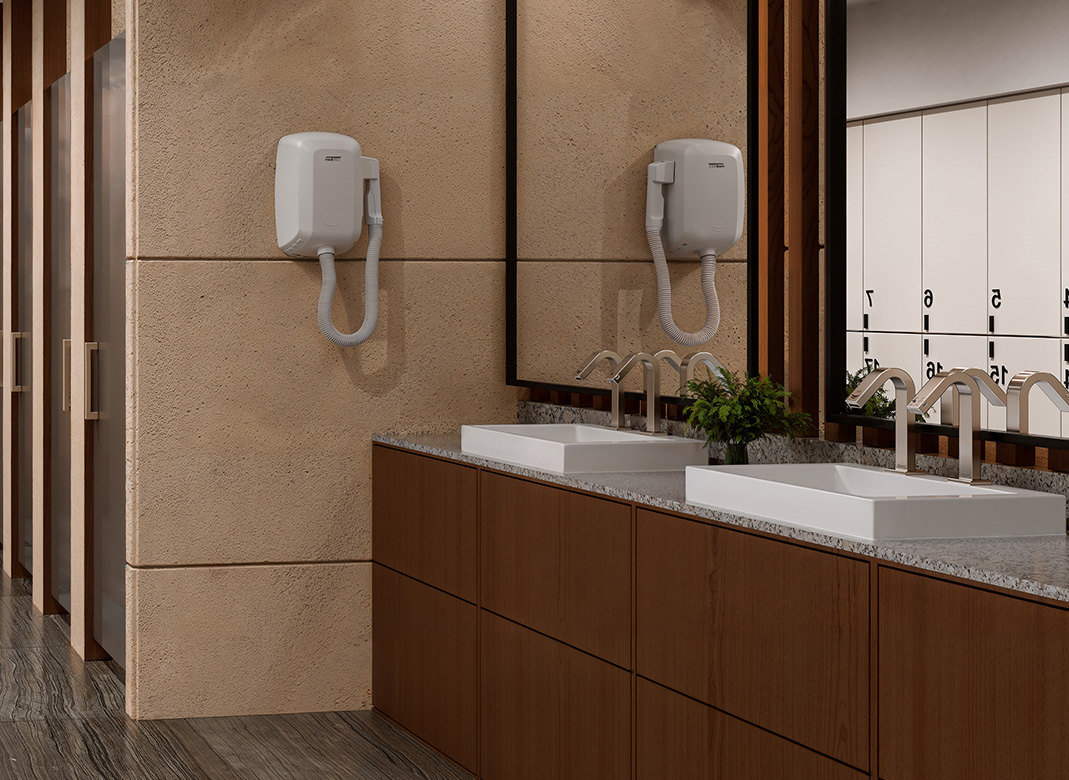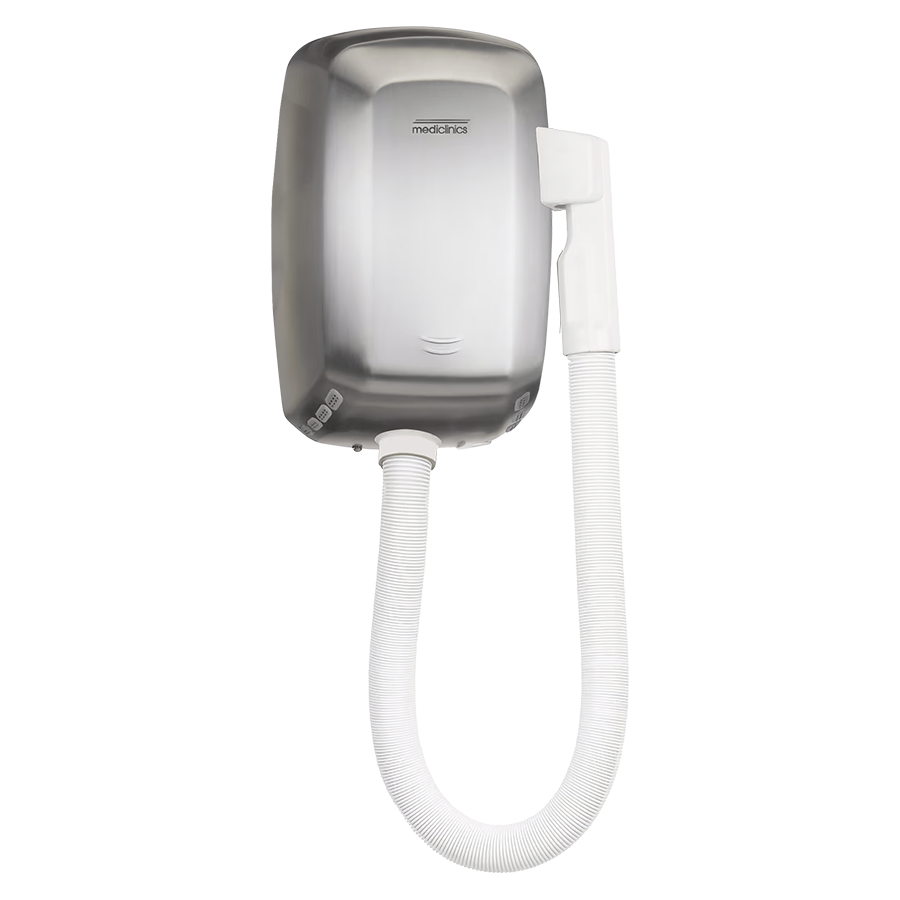 Secador de cabello Machflow® automático con tubo flexible, carcasa fabricada con acero inoxidable AISI 304 y diseñado para uso colectivo.